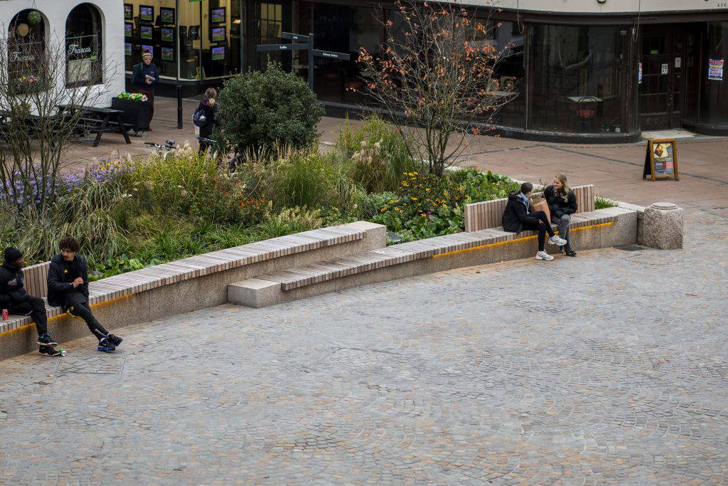 Natural Dimensions are excited to announce the completion of construction work for the Carlisle Greenmarket. This area has been a central part of the history of Carlisle for several centuries and our design attempts to interweave and reinterpret the site’s historic importance into a modern urban space. Natural Dimensions was commissioned to rework the initial concept and develop a technical package for construction. The proposals aim to establish the Greenmarket as a cultural venue for the city, transforming the space into a setting for urban life. New tiered and sculpted seating encloses an event square and incorporates several innovative art and bespoke seat wall features to establish a distinctive character and relate to Carlisle’s rich heritage. A stage allows city residents and visitors to enjoy creative performance backdropped by a large stone planter which incorporates features and seating design carefully detailed to compliment the historic buildings behind it.