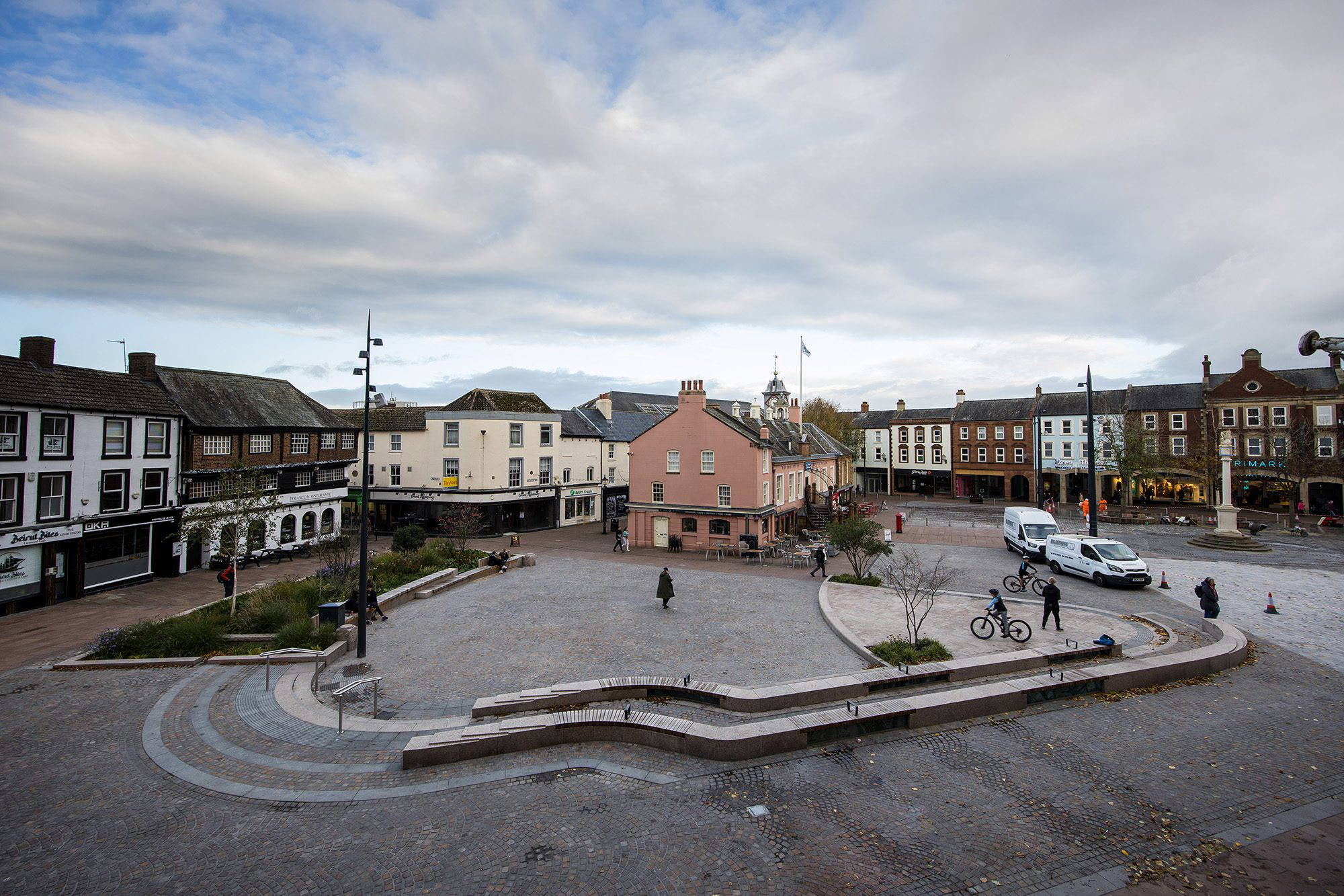 Natural Dimensions are excited to announce the completion of construction work for the Carlisle Greenmarket. This area has been a central part of the history of Carlisle for several centuries and our design attempts to interweave and reinterpret the site’s historic importance into a modern urban space. Natural Dimensions was commissioned to rework the initial concept and develop a technical package for construction. The proposals aim to establish the Greenmarket as a cultural venue for the city, transforming the space into a setting for urban life. New tiered and sculpted seating encloses an event square and incorporates several innovative art and bespoke seat wall features to establish a distinctive character and relate to Carlisle’s rich heritage. A stage allows city residents and visitors to enjoy creative performance backdropped by a large stone planter which incorporates features and seating design carefully detailed to compliment the historic buildings behind it.